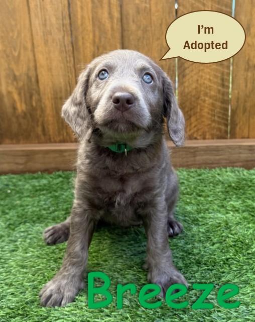 Breeze is a silver-chocolate coated sweetheart with a playful heart and a gentle touch. She loves being held and will nuzzle into your arms for kisses and the occasional belly rub. Her soft nature is balanced by a fun-loving spirit—she enjoys playtime and exploring with her siblings. Breeze is the kind of pup who brings calm and joy in equal measure, making her a perfect match for someone who wants a loving, easygoing companion.